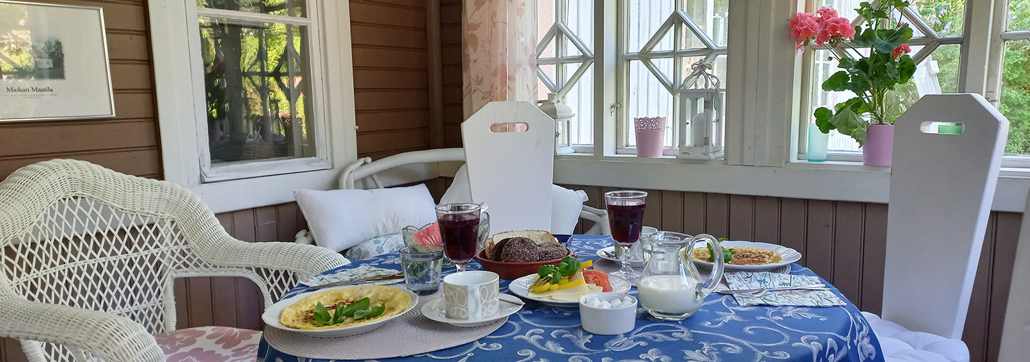 Mummola tarjoaa valoa ja tilaa 4–5 hengelle, ikkunoista ihailet vanhan pihapiirin tunnelmaa. Omat hyvin varustellut keittiötilat, wc ja suihku, pihapatio. Tutustu resepteihimme arjen katkaisuun!